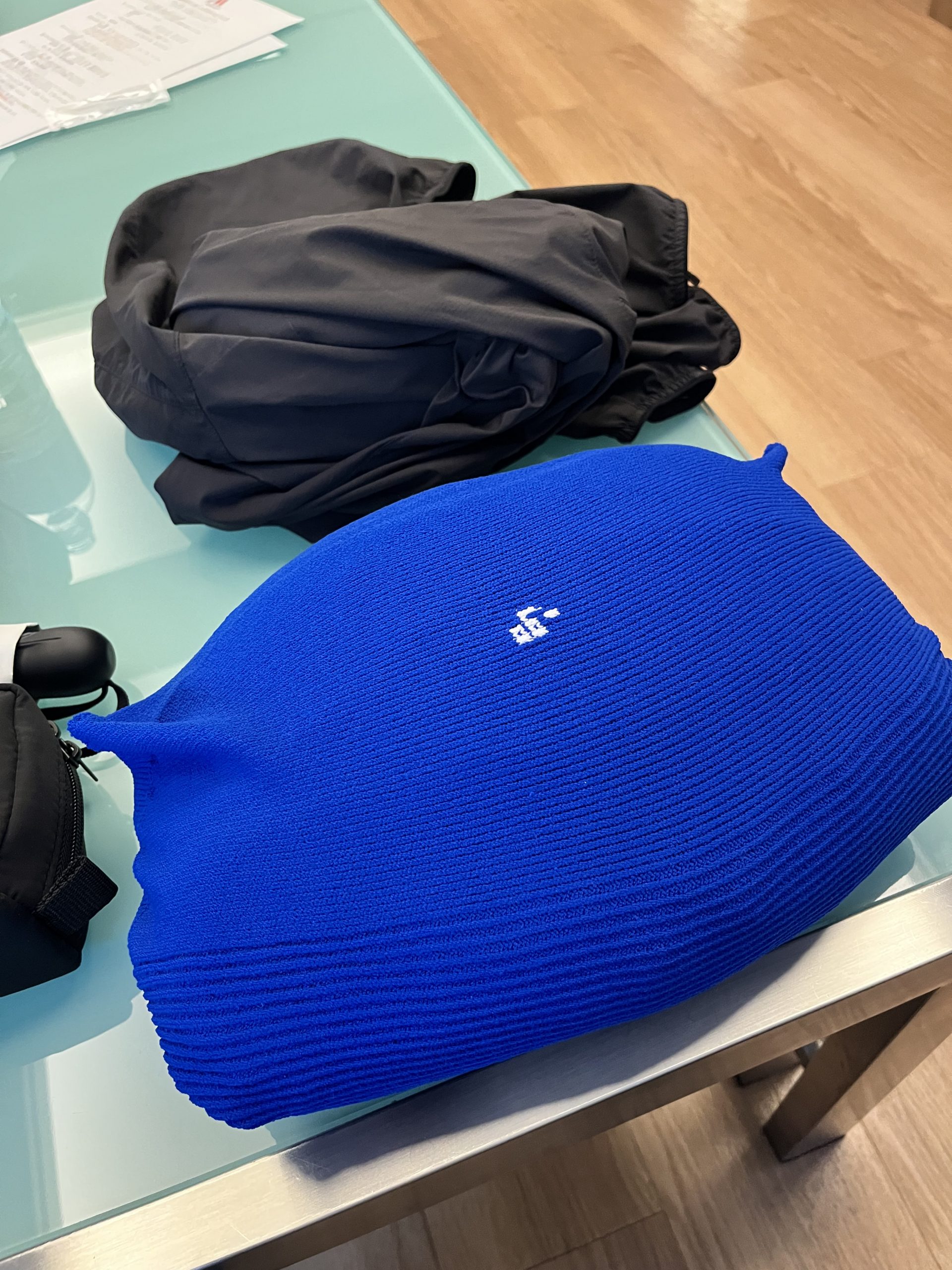 私はブルー、妻にはグレーをプレゼント。大きめのトートバッグに入れてGO。