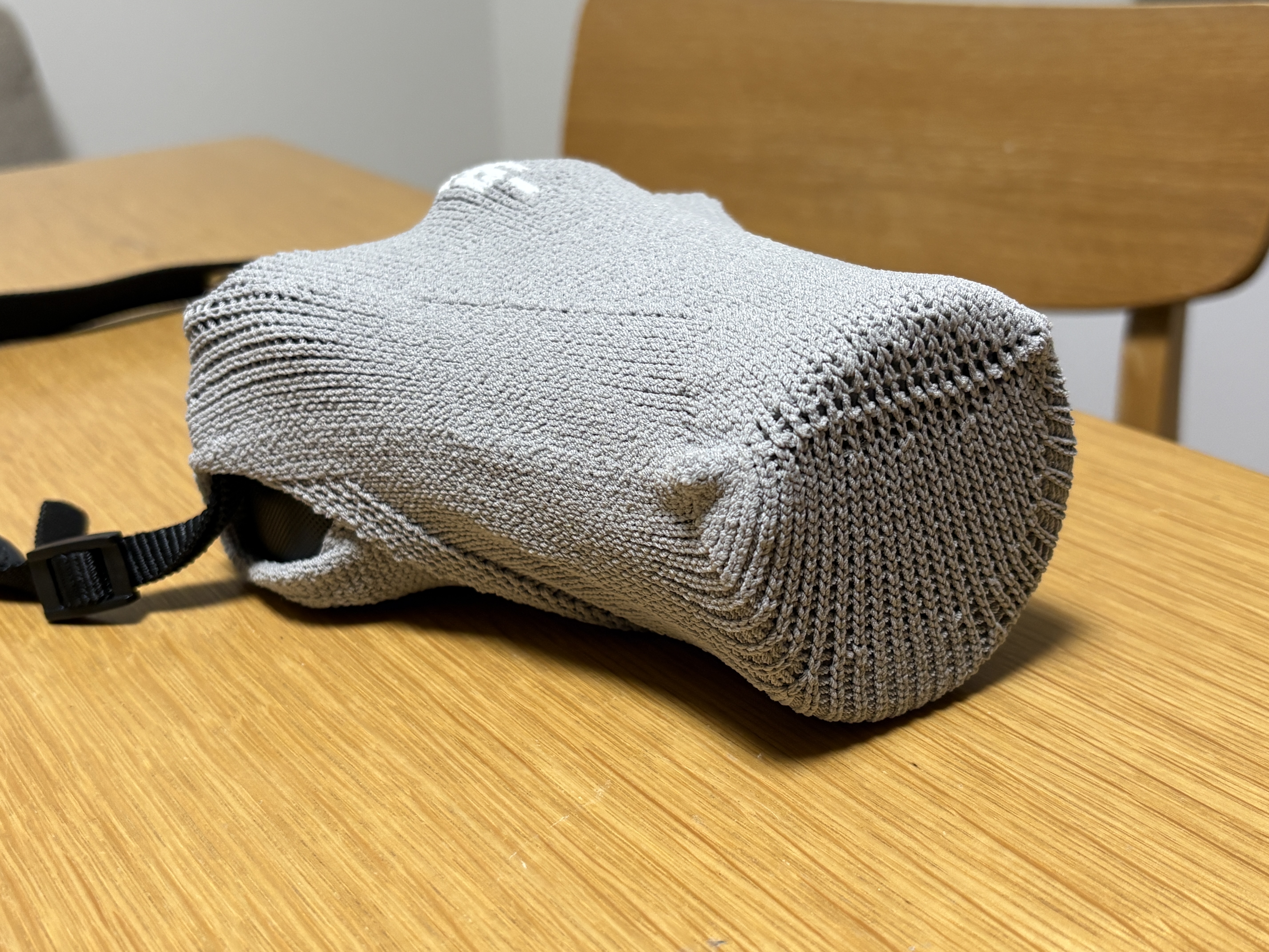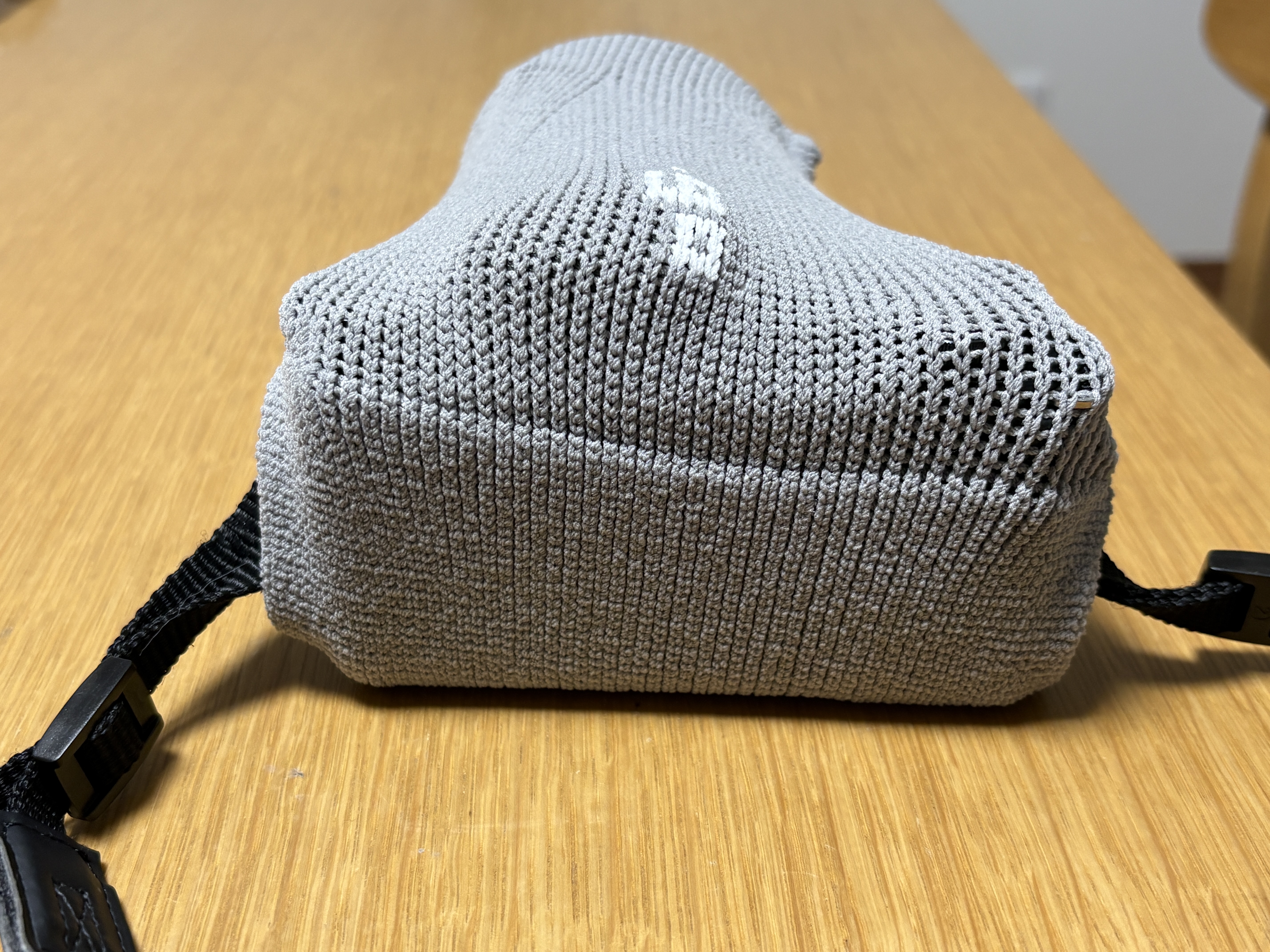 綺麗に包めましたが、すこしきついようで、編み目が伸びて大きくなっている箇所があります。もう少し大きい方がいいのかな?