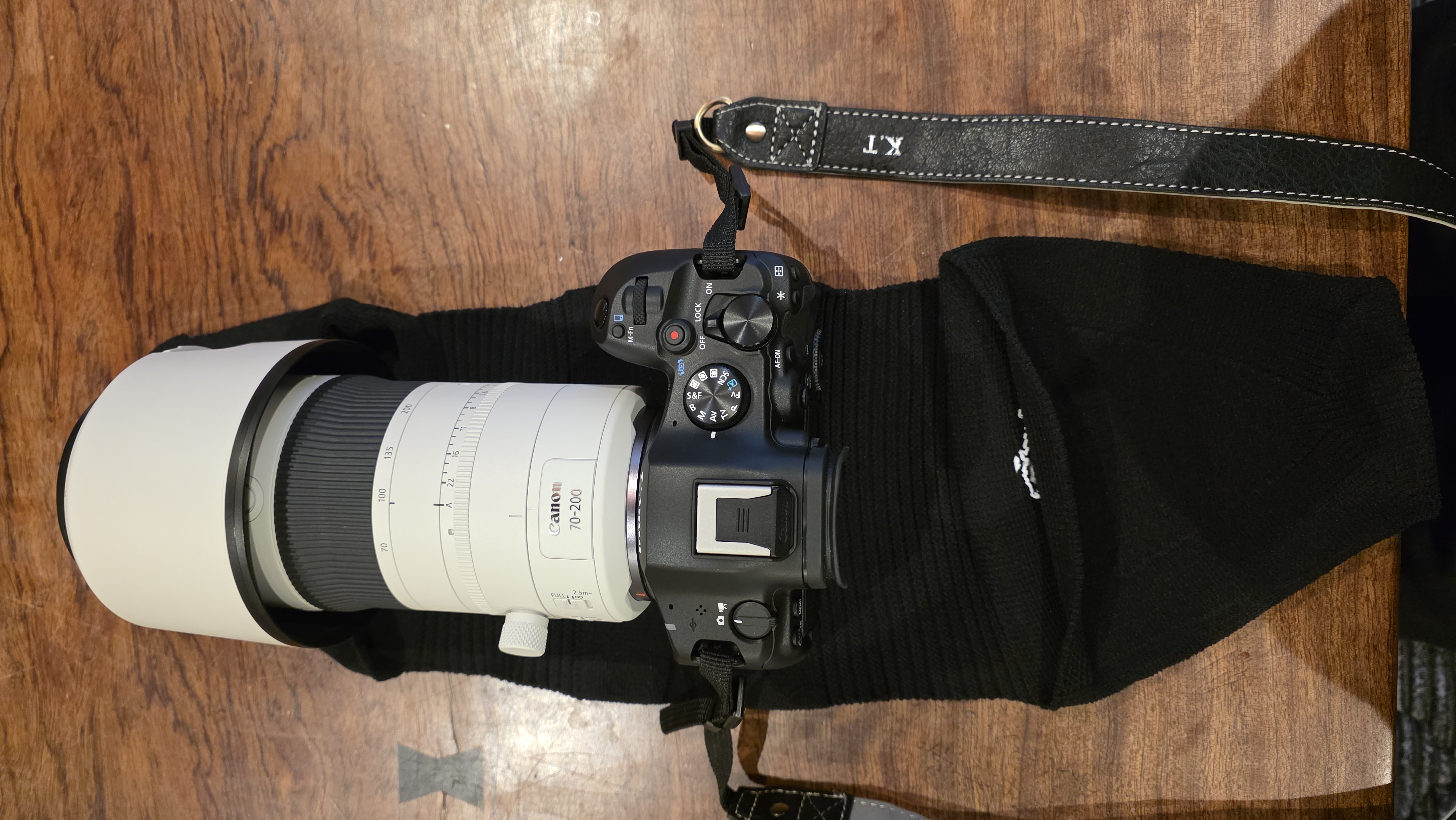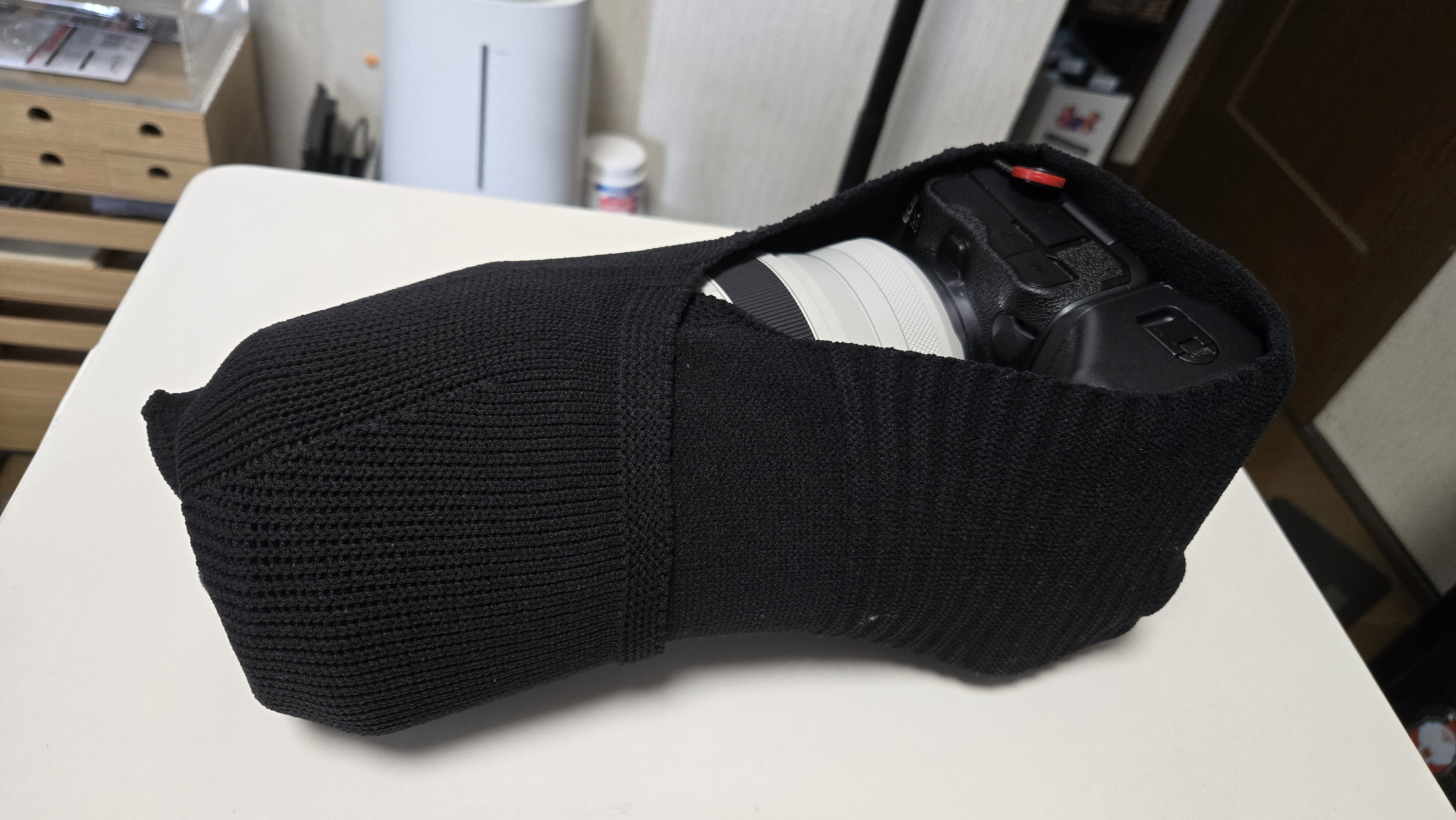 Canonのミラーレス一眼カメラに70-200mmレンズを装着してgolygon XLに包みました。