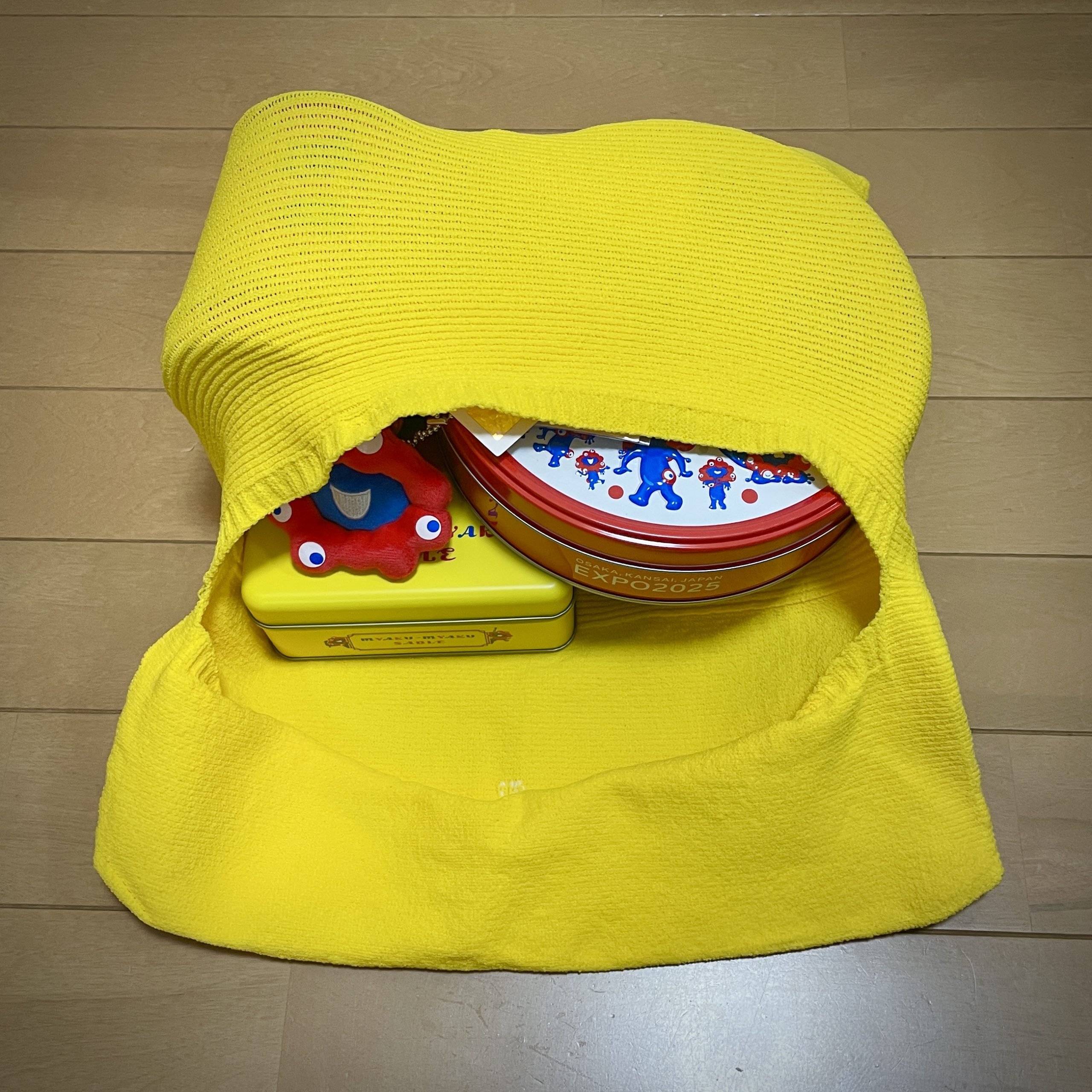 旅先で買ったお土産を空港や駅などから自宅に送ることが多いのですが、梱包材代わりに_goパッキングニットで包んでみました。コンパクトにまとまっていい感じです。もっと入りそう!一応タオルで包んでから持参した袋に入れて送れば安心です。旅先で急に荷物が送りたくなった時にも_goがあれば便利ですね。