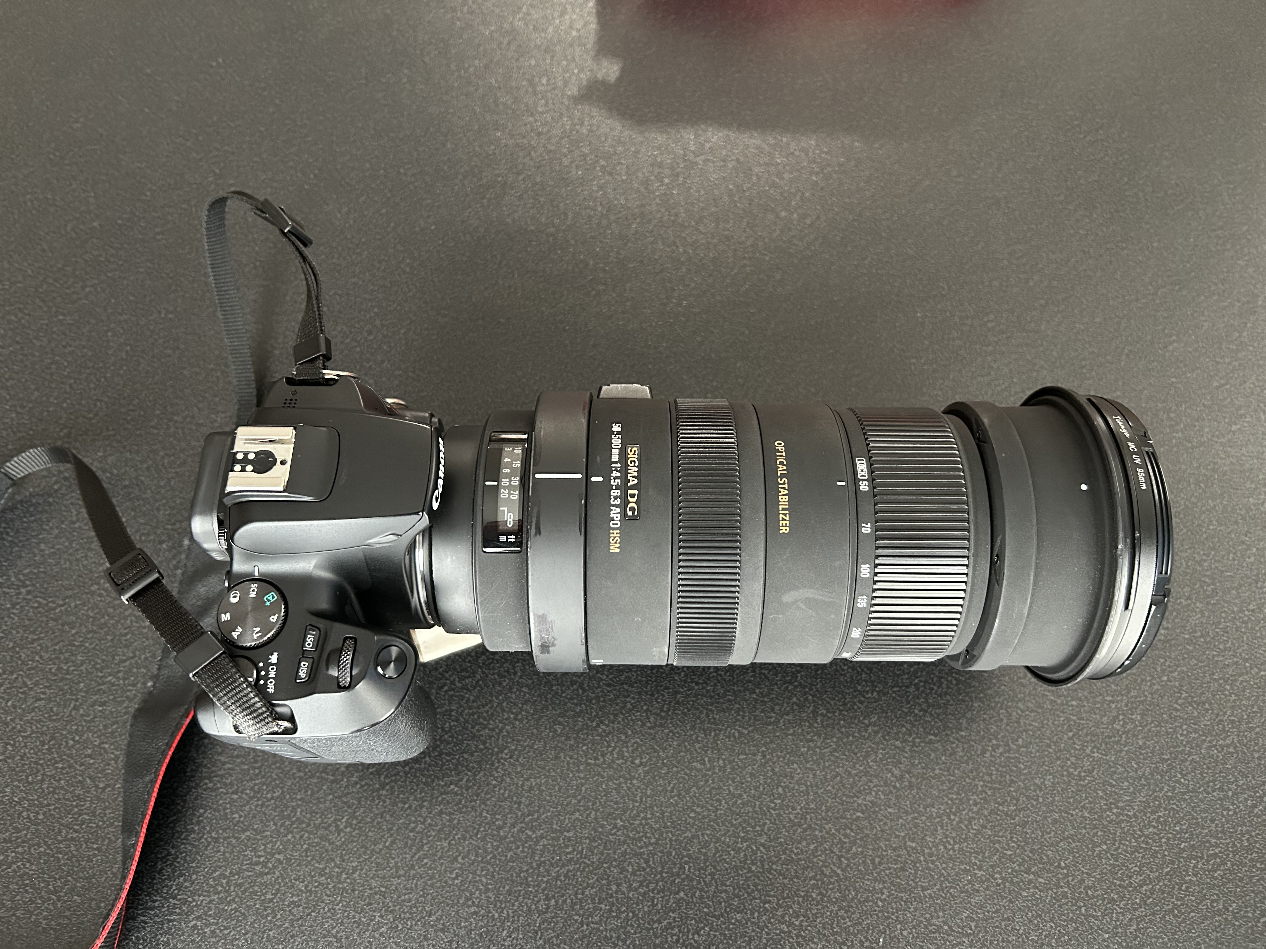 フード逆向き装着、三脚架付でも余裕で使用可能。1.4倍エクステンダー装着状態でも使用可能だった。