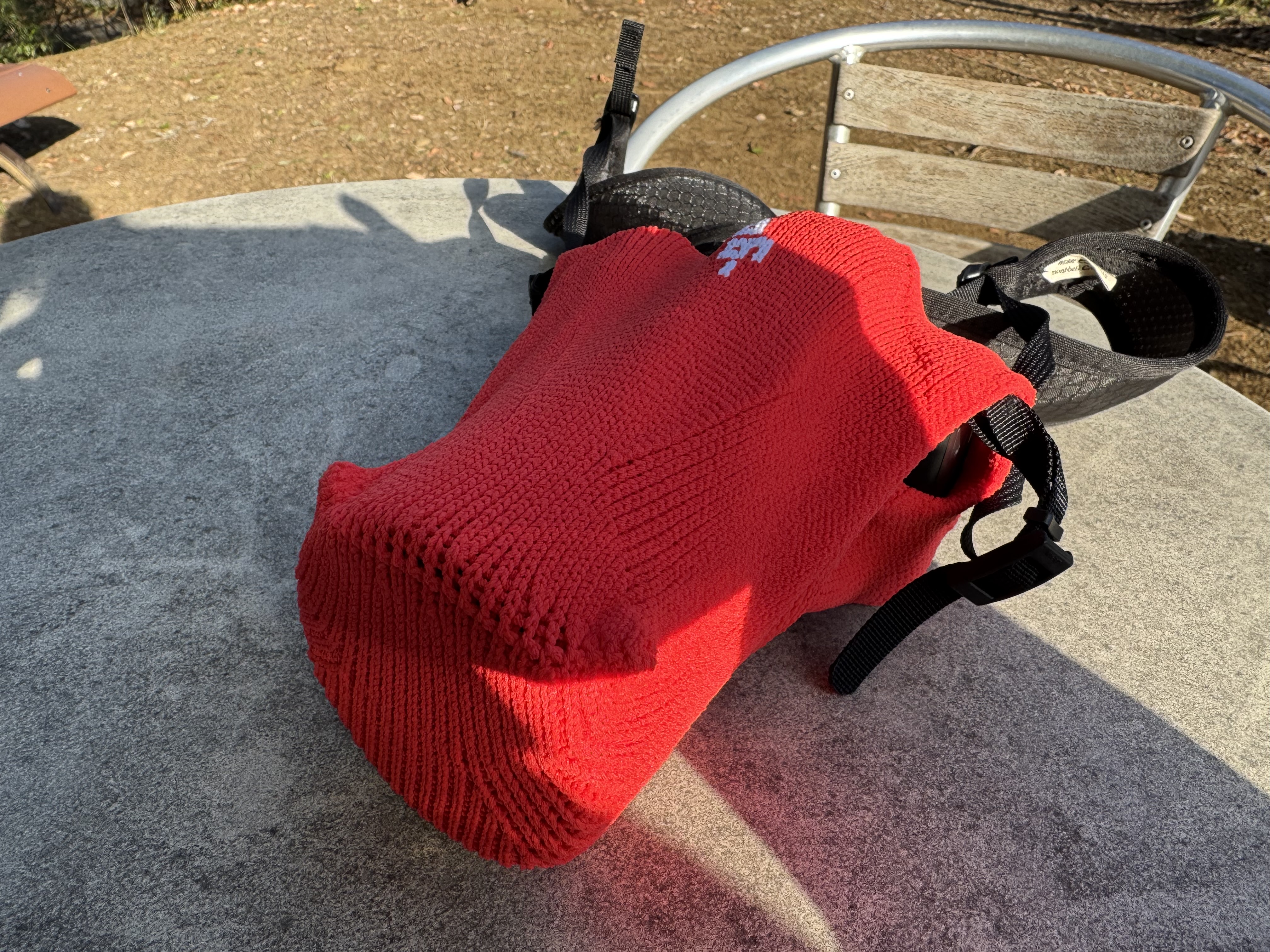 厚手の生地ですが、伸びもよく、伸びが良すぎてどこかに引っ掛けて穴があきそうな気もするので、気をつけて包みますね。