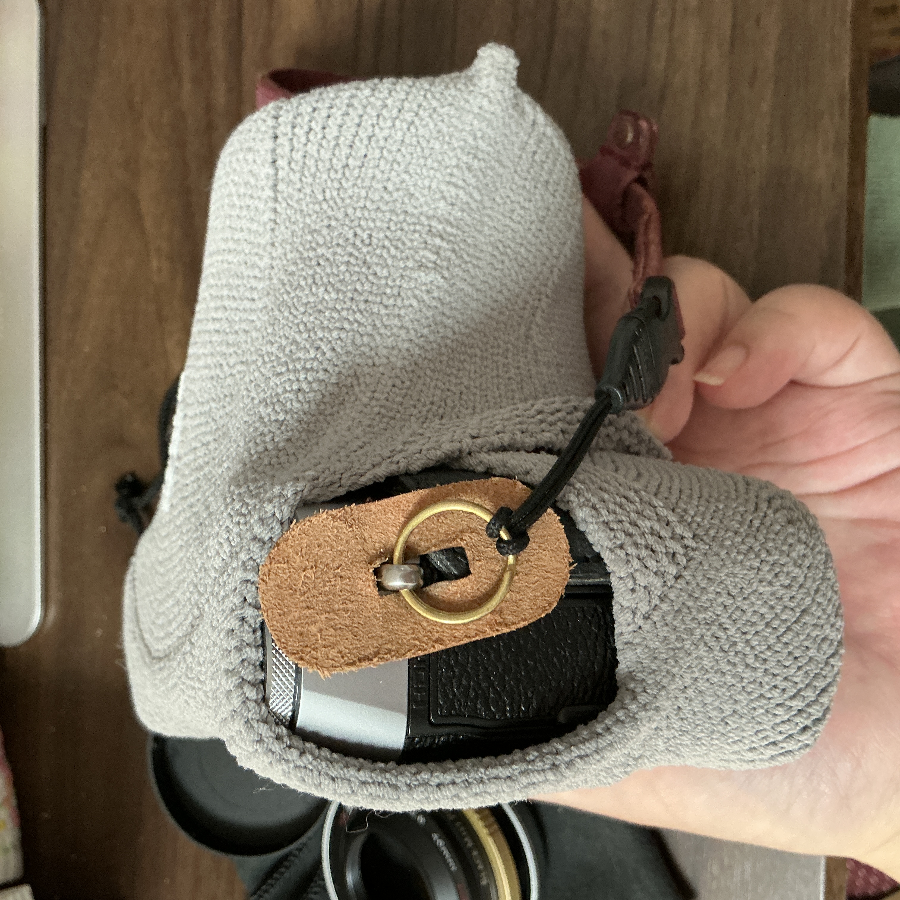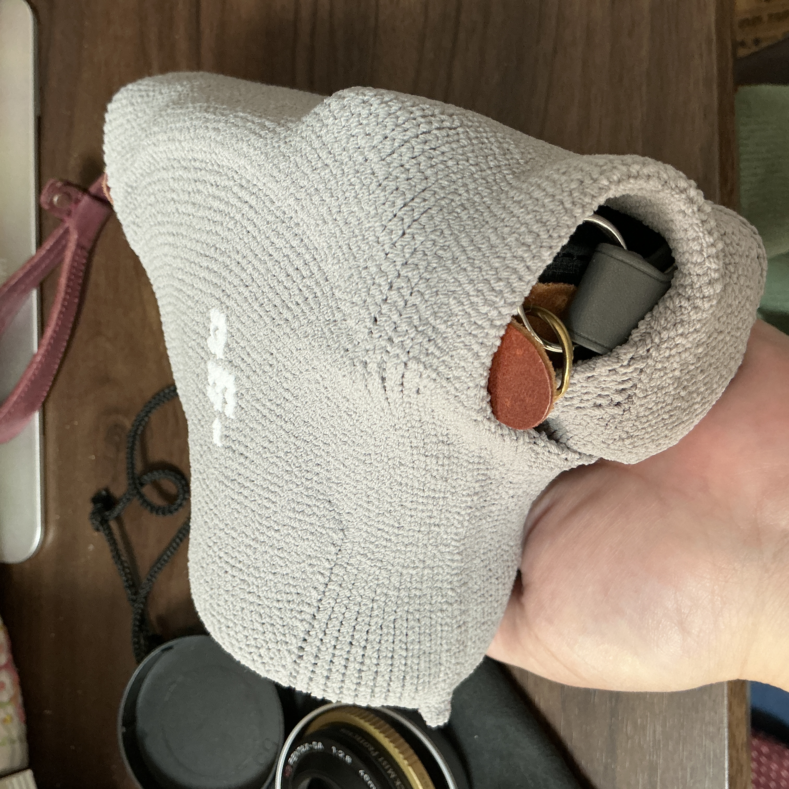 あと、慣れの問題だと思うが、カバーを外す際、編み地が結構強いので反動でカメラを落としそうになった。勢い余って飛んでいく感じ。使い始めは要注意かもと思った。