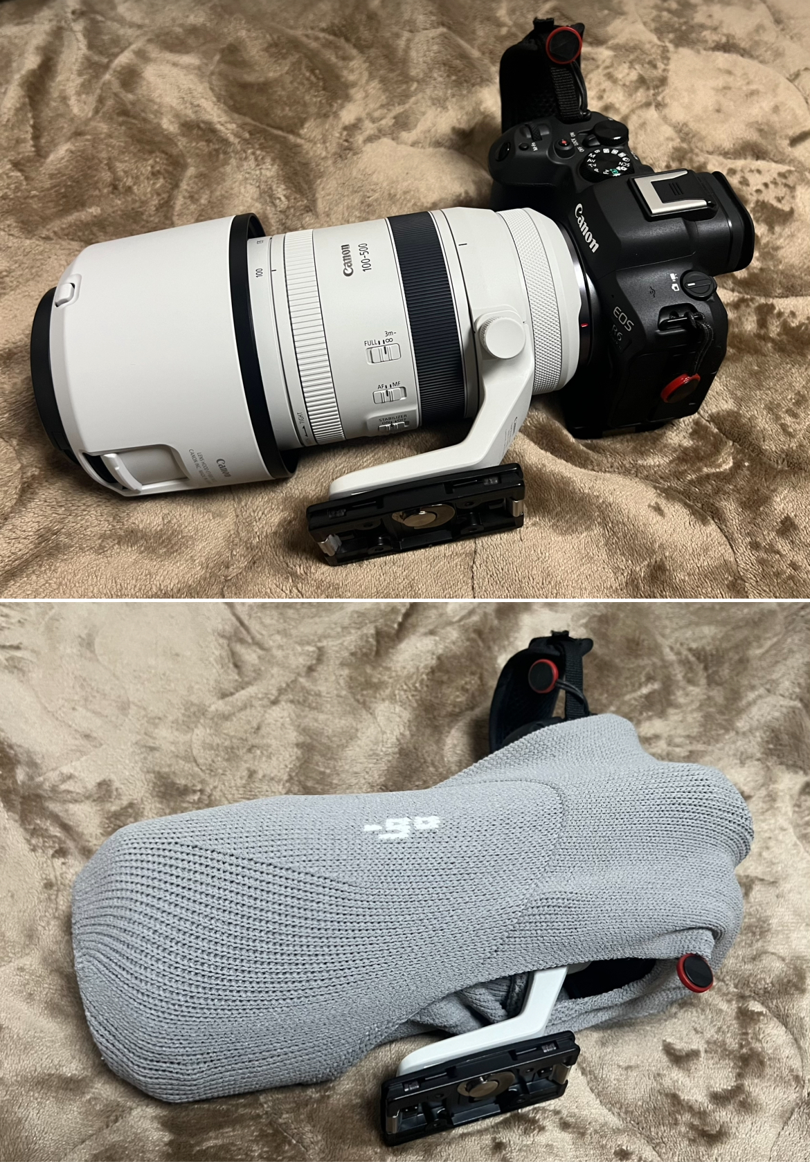 フードを反転してカメラにセットして包みました。