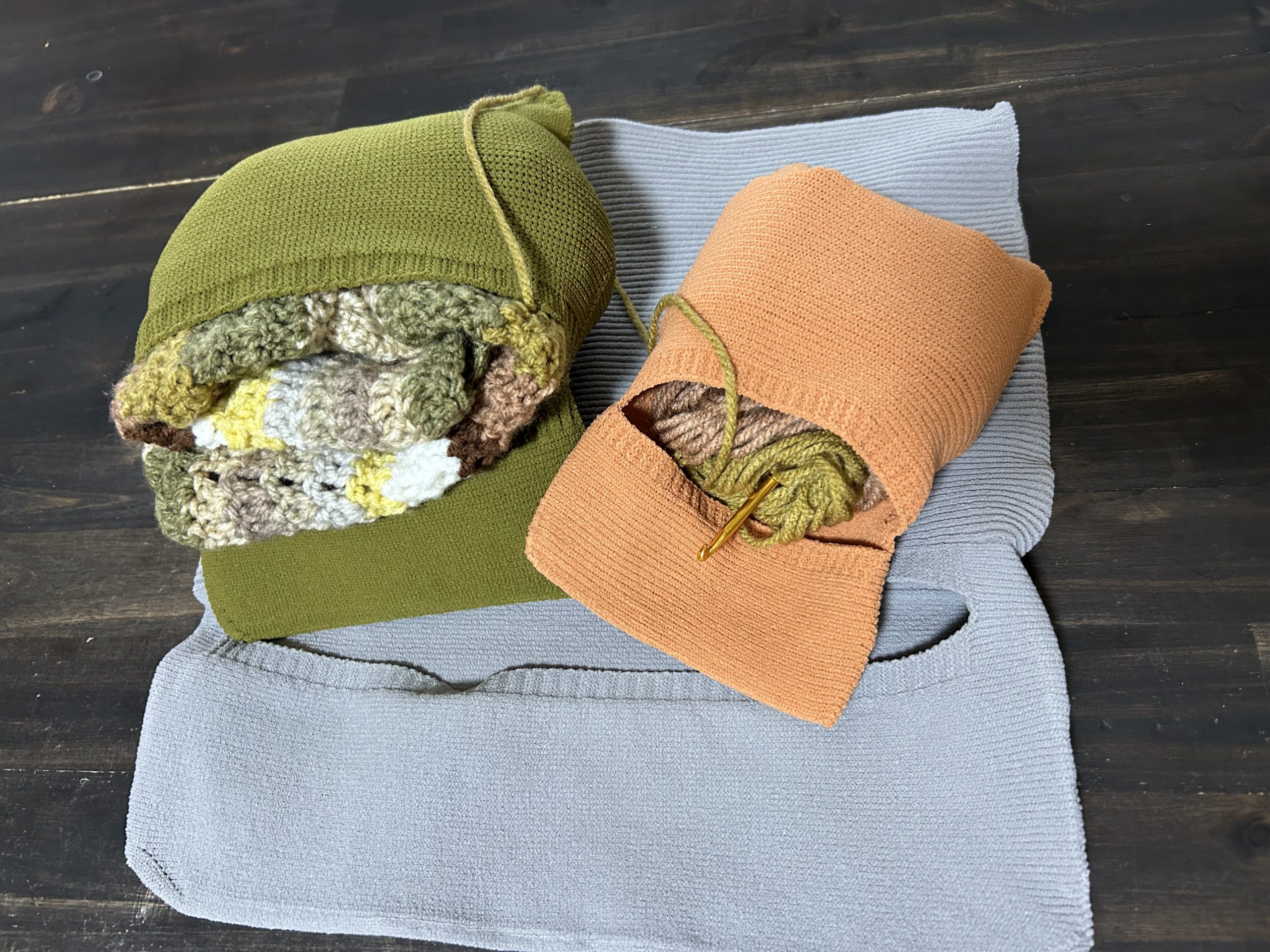 2025.10.28 編み物 Tweet 投稿者:つつん様持っていくアイテム:編み物グッズコメント旅行以外では編み物いれにしています。 糸をキュッと支えてくれるので子供や猫に遊ばれてもバラバラになりにくくてありがたいです。 編んでいくと、嵩張っていくのですが、お試し価格の大きなグレーの物に入れるとやわらかい小さな枕になってくれます 見た目も可愛くて気に入っています