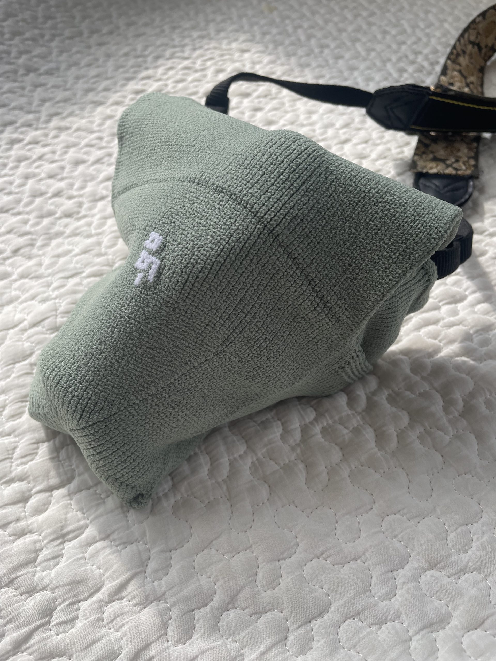 普段のオールドレンズ55mmでもガバガバせずに包めました!望遠レンズはバッグの中でつけたまましまうのが難しかったのでキュッと包めていい感じです!
