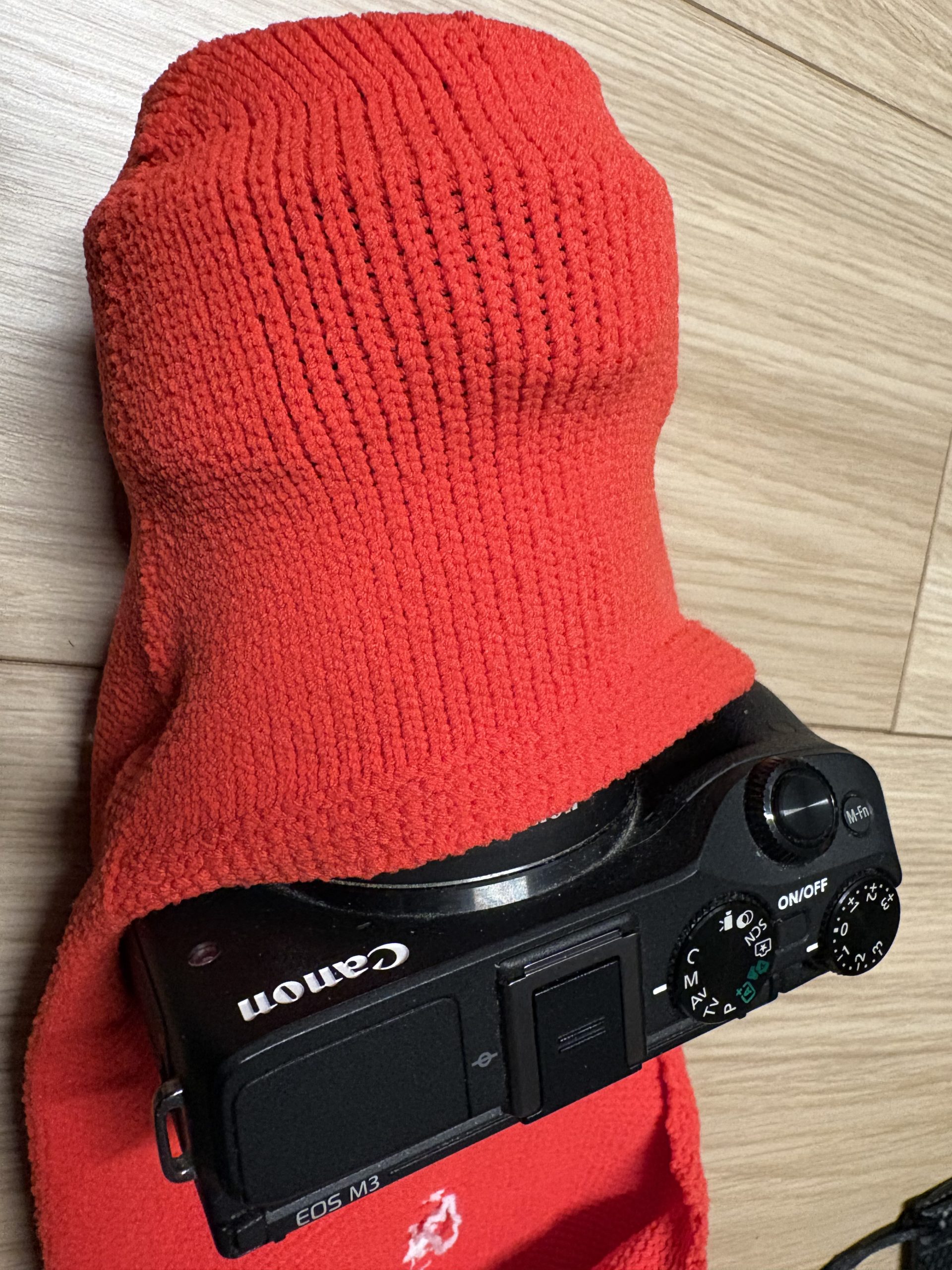 包んでいるカメラ:EOS M5. EOS M3