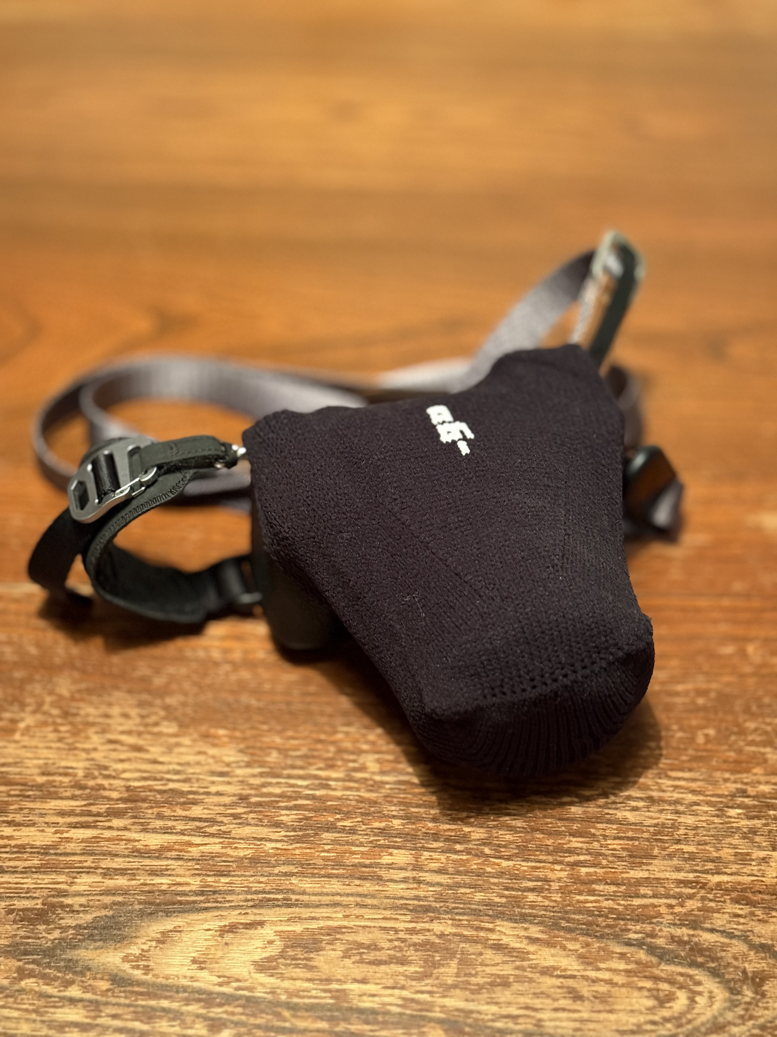 レンズフードをつけた状態でジャストでした!ストラップ類を横に逃がせるので使い勝手が良さそうです!