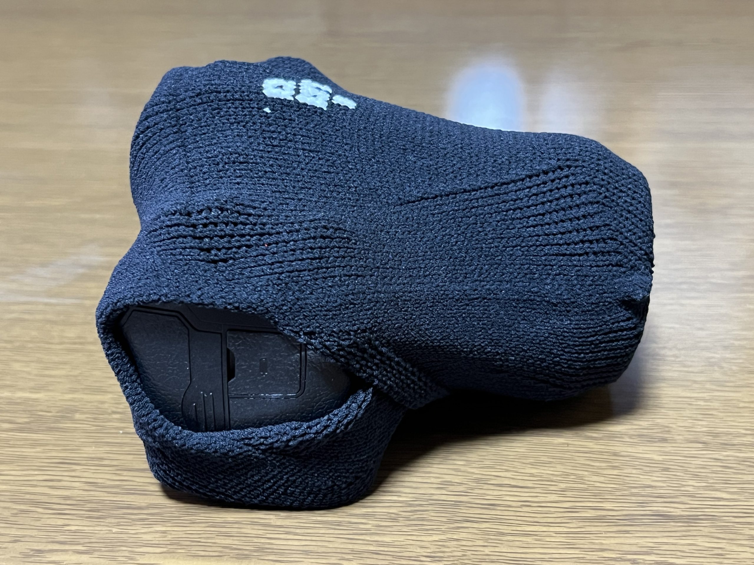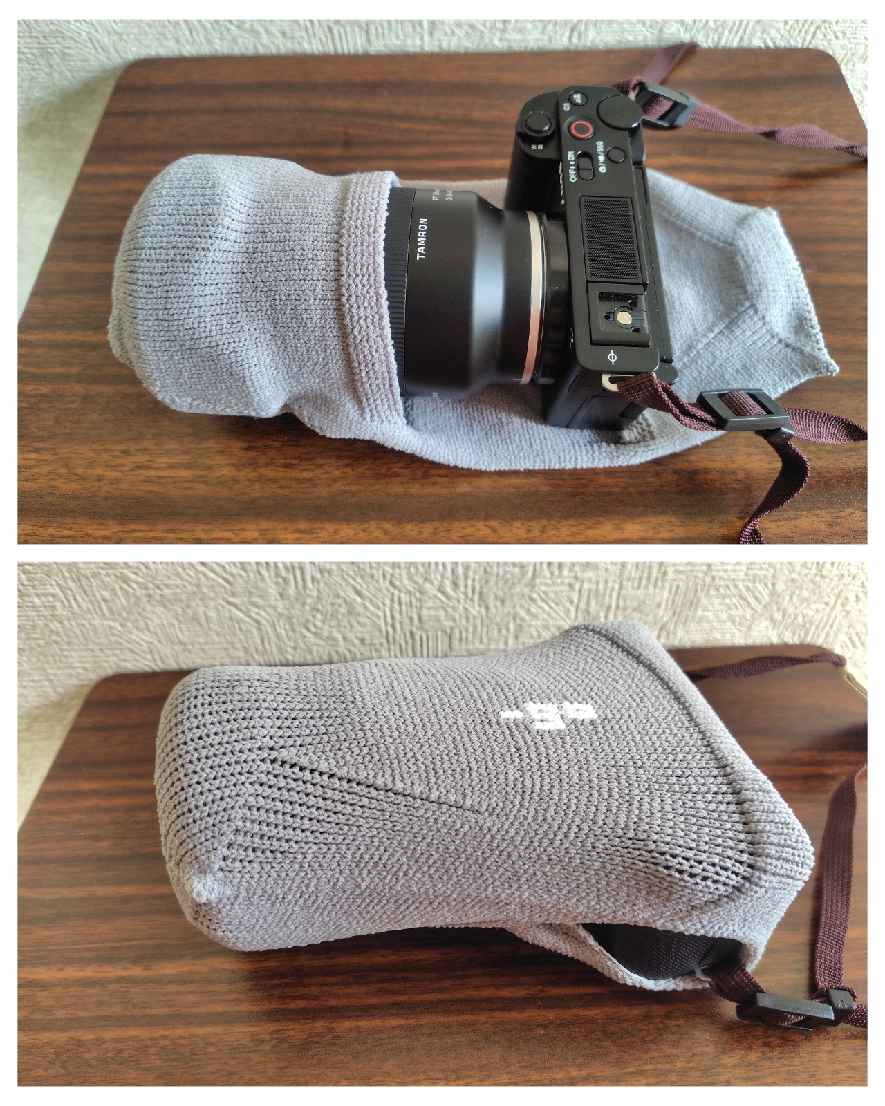 しっかり伸びてつつめた。のばしてつつんでぴったり、これ以上レンズが大きいときつい印象。